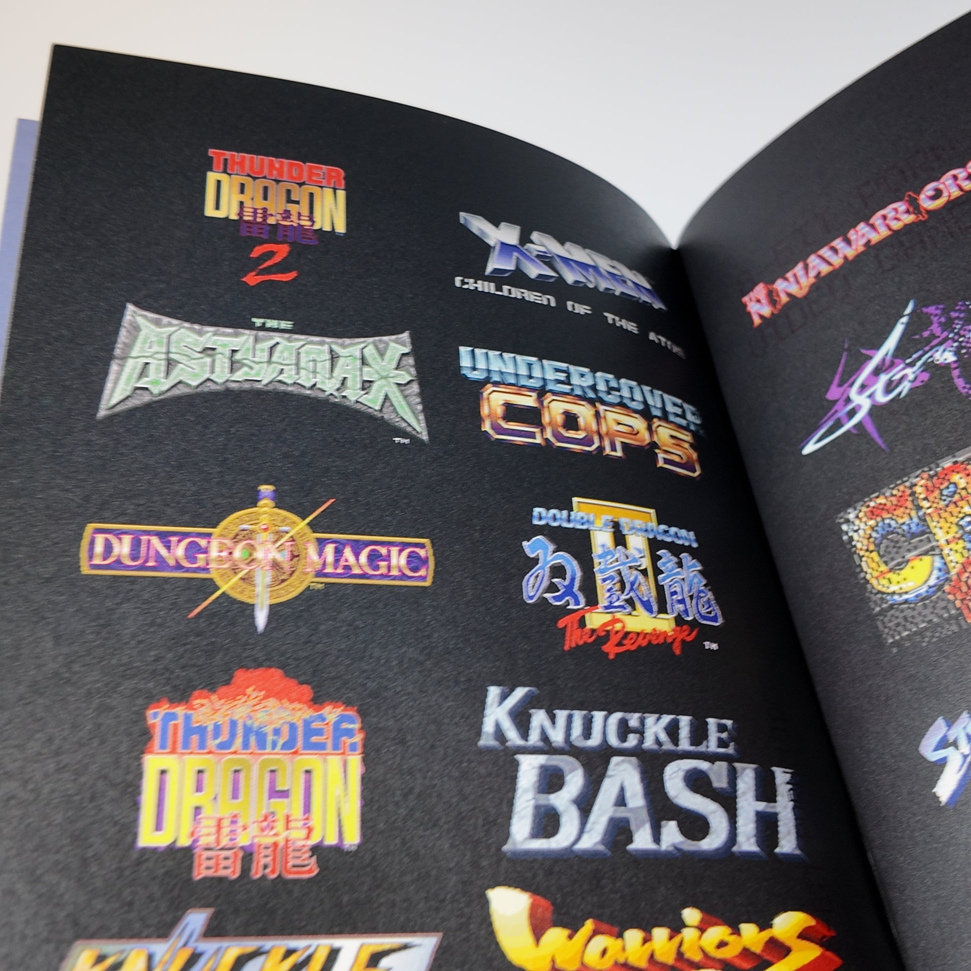 Pamphlet style collection of Classic Arcade logos from Masala Noir, Great design inspiration book.